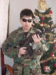 It's not a costume that I'm wearing, I'm wearing my camouflage military combat outfit and my assault rifle is real..