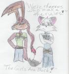 Icy is a lot of fun to draw because of her skater girl spunk. But her facial features can be pretty hard to do some times. And, no matter how much we try Danni, she's always going to look like a cat! XD