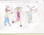 WAIT! Before you all put that jaw-drop smiley and say, WUT! Ur a fan artist!? I want to say, yes. Yes, when I was ofline for ages because I lost my computer, I took to drawing fan arts (arts!?). So here they are! At sometime I'll post a WTF IS GOING ON? competition picture. Here are my artz: EDIT: my scanner stuffed up and so the one with Lexi, Tech and Ace is about a day off. The one with them in costume has Rev as a blur in the corner but that was so light it didn't come up.